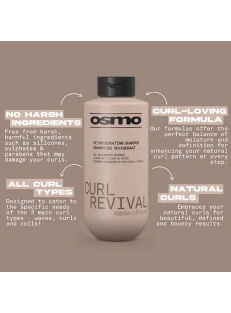 Discover the power of OSMO Curl Revival Shampoo 400ml, specially formulated to bring your curls back to life. This reinvigorating shampoo gently cleanses while preserving essential moisture — perfect for curly, wavy, and textured hair.