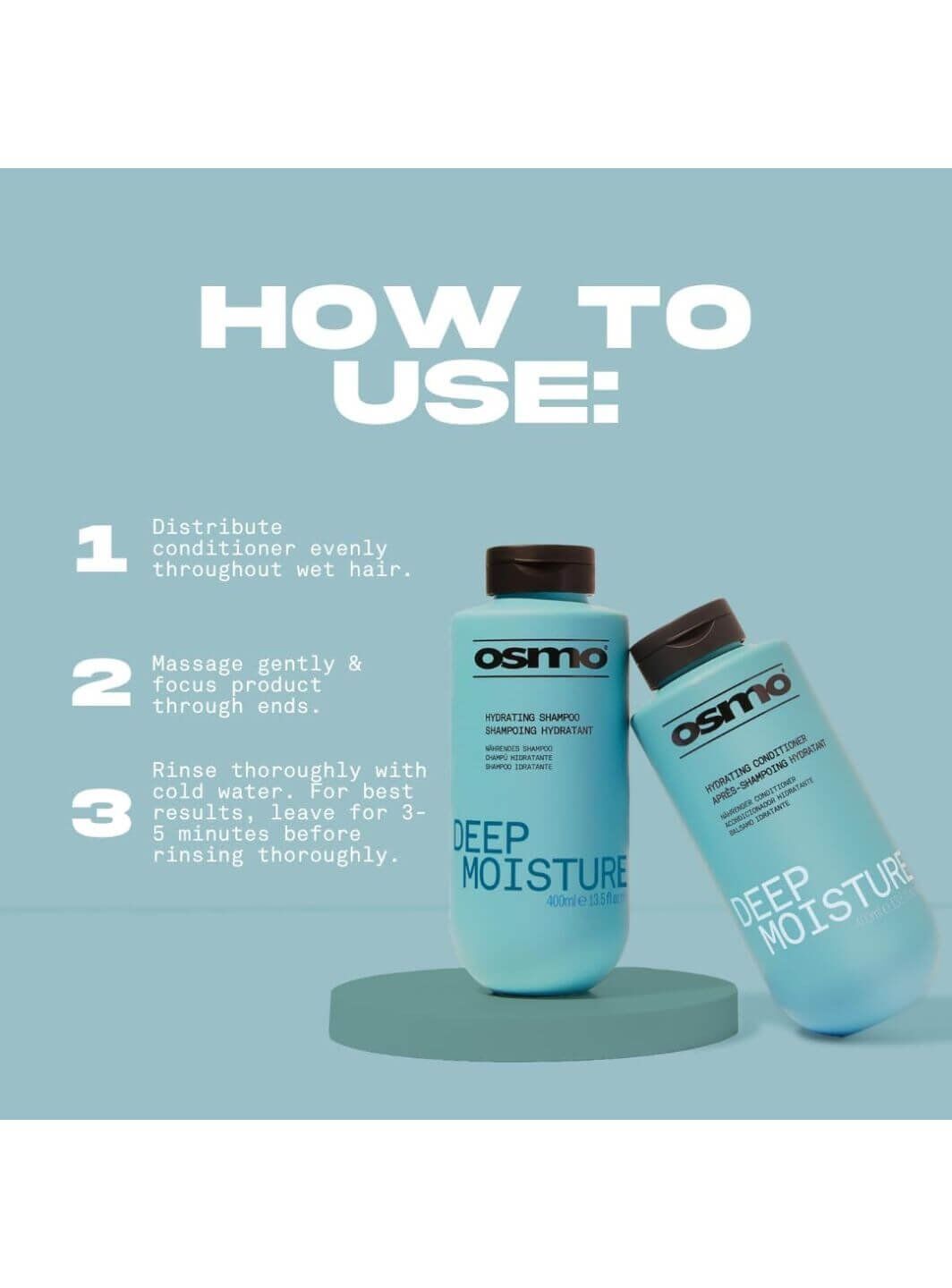 Achieve soft, hydrated hair with Osmo Deep Moisture Conditioner 400ml. This professional formula deeply nourishes dry and damaged hair using Pataua Oil and Keratin Complex, helping restore shine, strength, and manageability without weighing hair down.