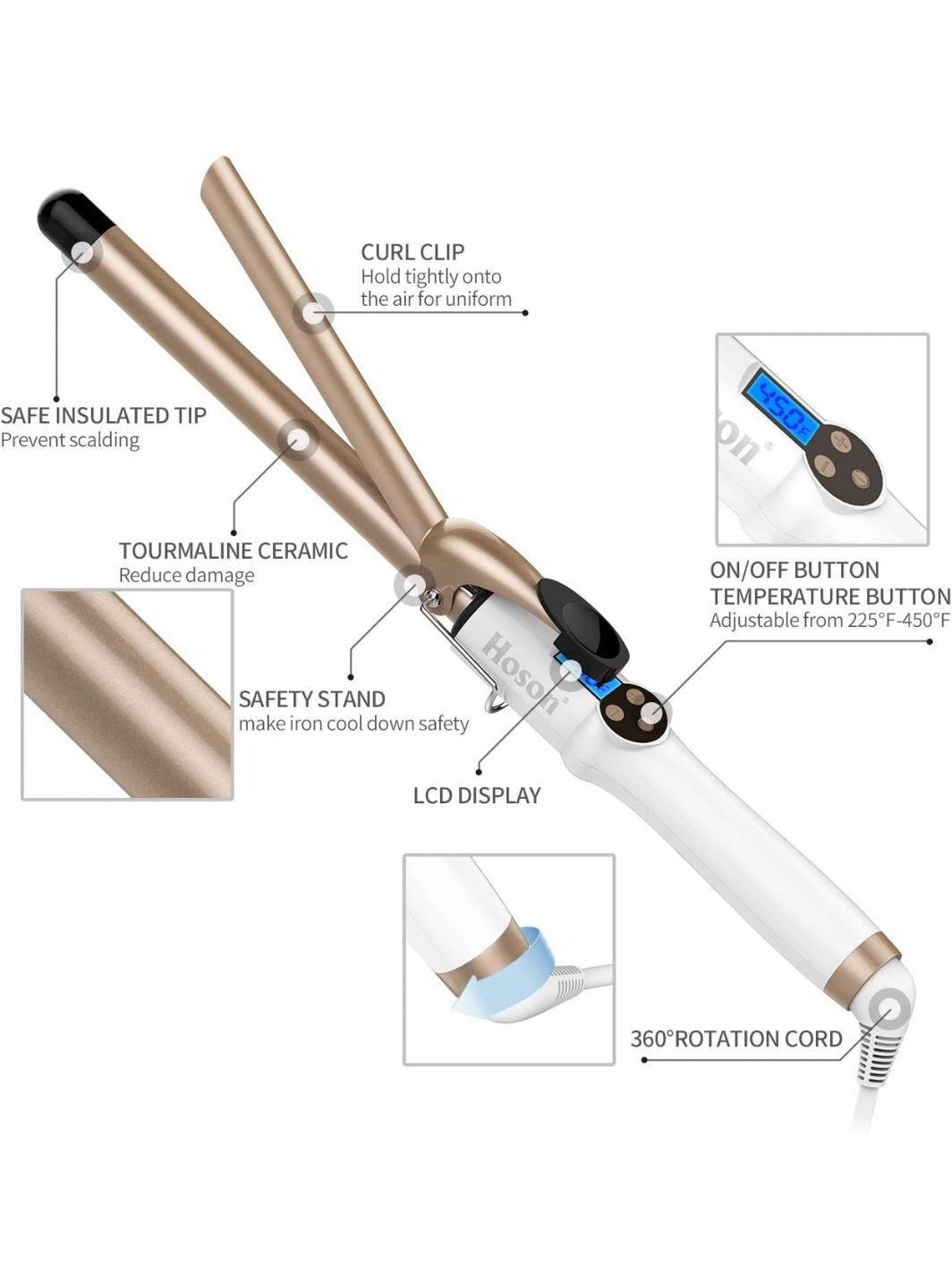 Hoson 19mm Hair Curling Tongs for Long Hair – Smooth, Lasting Curls