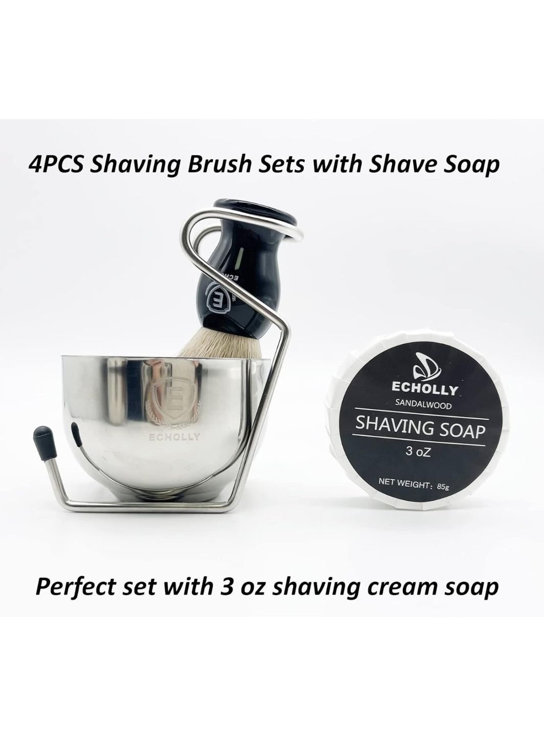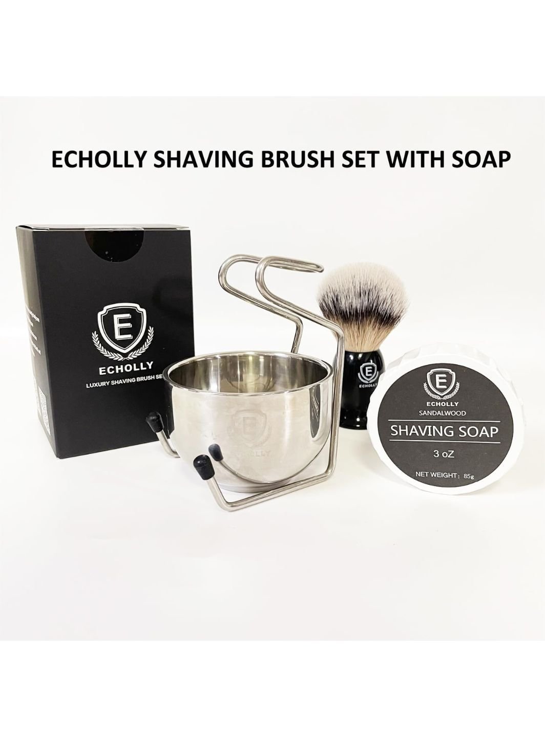 The Echolly 4pcs Men’s Shaving Brush Set, available at Aurellienne, is designed for men who value a smooth, classic, and irritation-free shaving experience. This complete wet shaving kit includes a premium shaving brush, stainless steel stand, shaving bowl, and rich shaving cream soap—perfect for daily grooming or gifting to boyfriends and fathers.