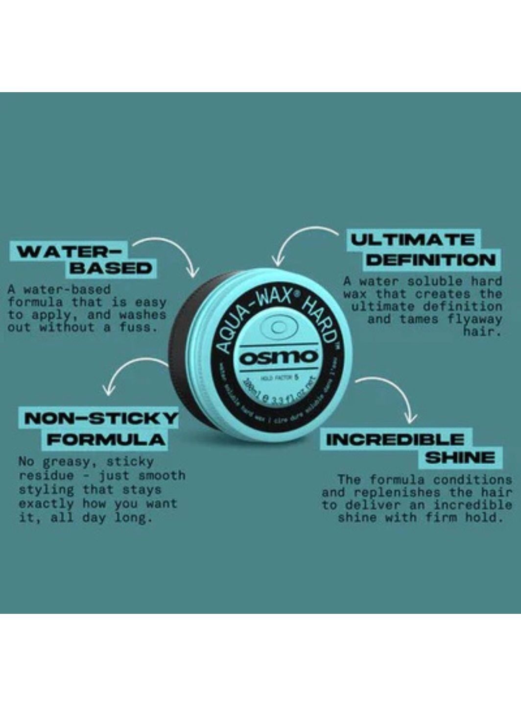 Bring your hairstyle to life with Osmo Aqua Wax Hard 100ml, a water‑soluble styling wax that provides a firm, long‑lasting hold and incredible shine without stickiness. Designed for both wet and dry application, this versatile wax helps you craft defined looks, tame flyaways, and control texture with ease.