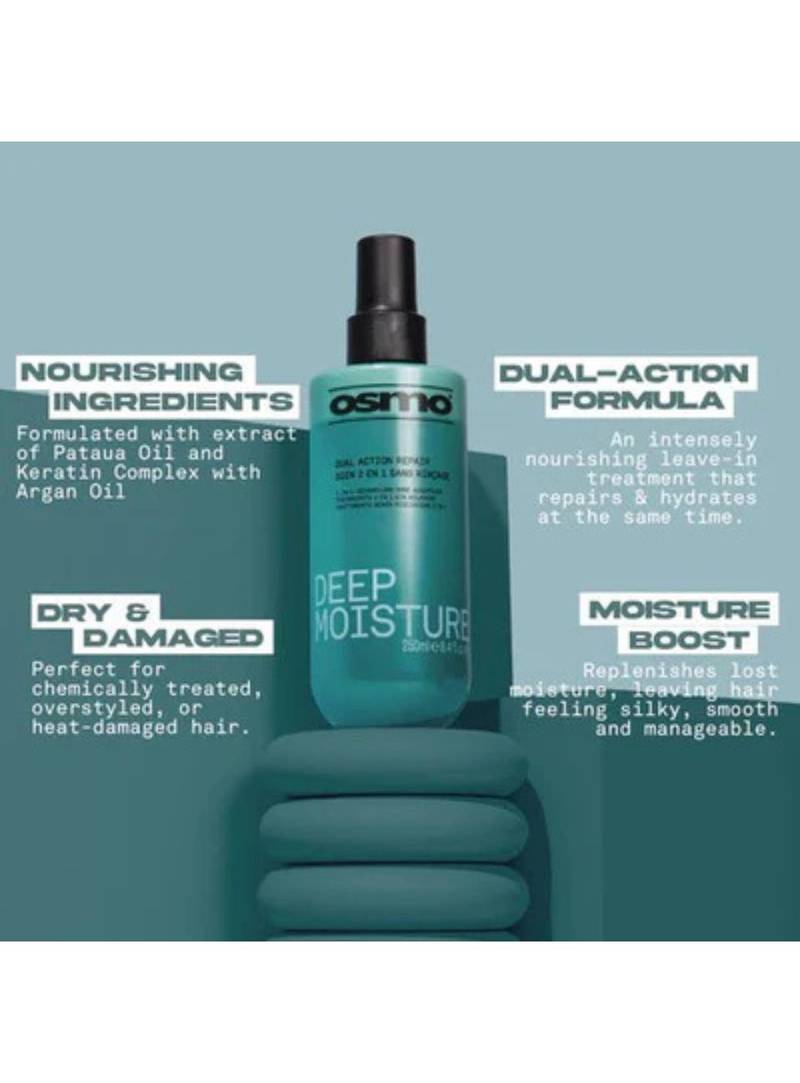 Transform dry, damaged hair with Osmo Deep Moisture Dual Action Miracle Repair, a professional hair treatment designed to restore strength, shine, and softness. Ideal for chemically treated, brittle, or frizzy hair, this dual-action formula penetrates deep to repair and hydrate from root to tip.