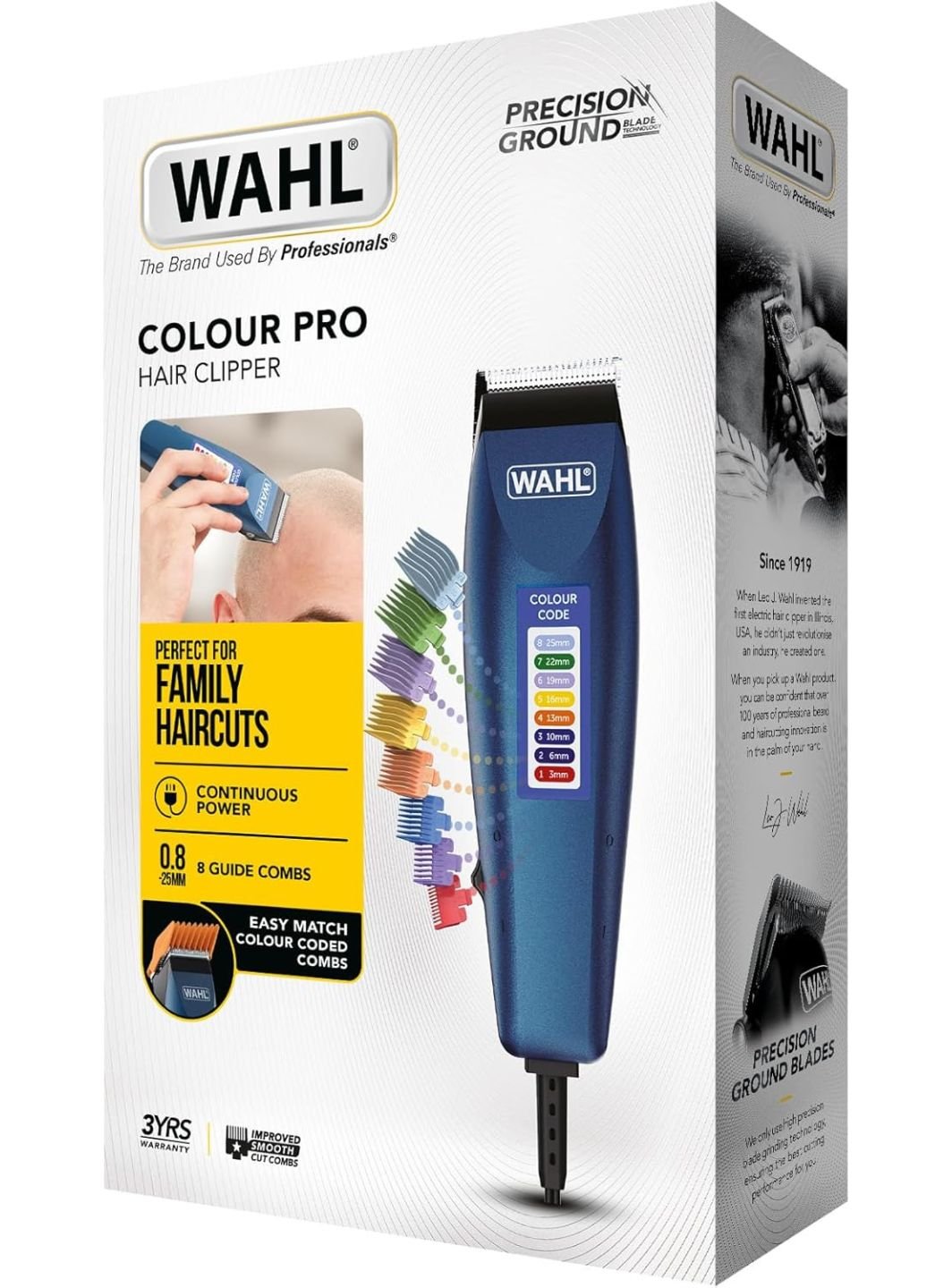Experience easy, precise grooming with the Wahl Colour Pro Corded Clipper from Aurellienne. Designed with colour-coded guide combs, it delivers fast, accurate home haircuts for the whole family. Ideal for men’s hair trimming, beard shaping, and head shaving with consistent power and professional results every time.
