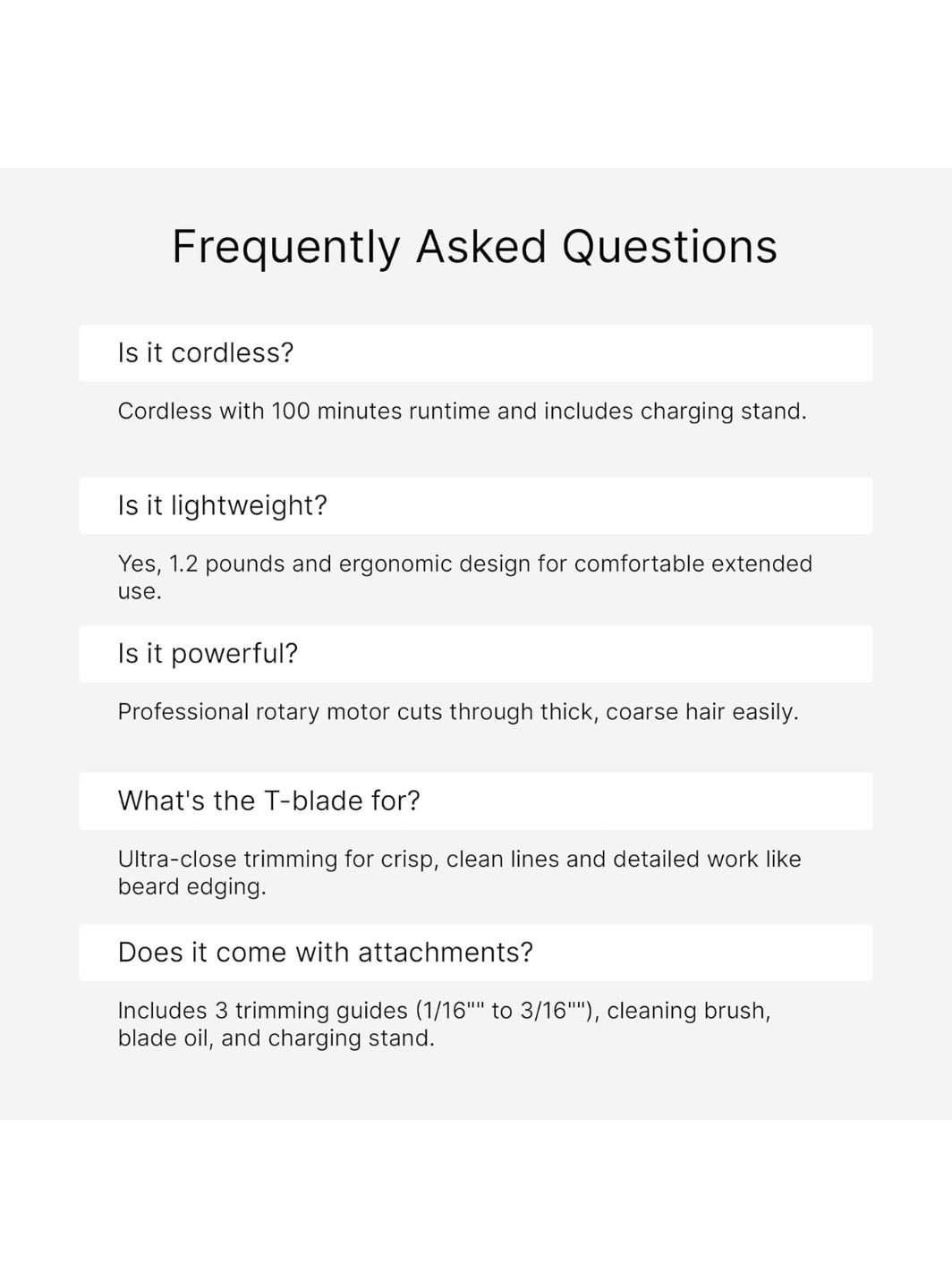 The WAHL Professional Cordless Detailer Li Trimmer is designed for barbers and grooming enthusiasts who want flawless detailing with maximum convenience. Built with high-performance rotary motors and ultra-sharp T-blades, it delivers exceptional control for crisp lines, edging, and close trims. Its lightweight, cordless design ensures smooth handling while maintaining professional-grade power.
